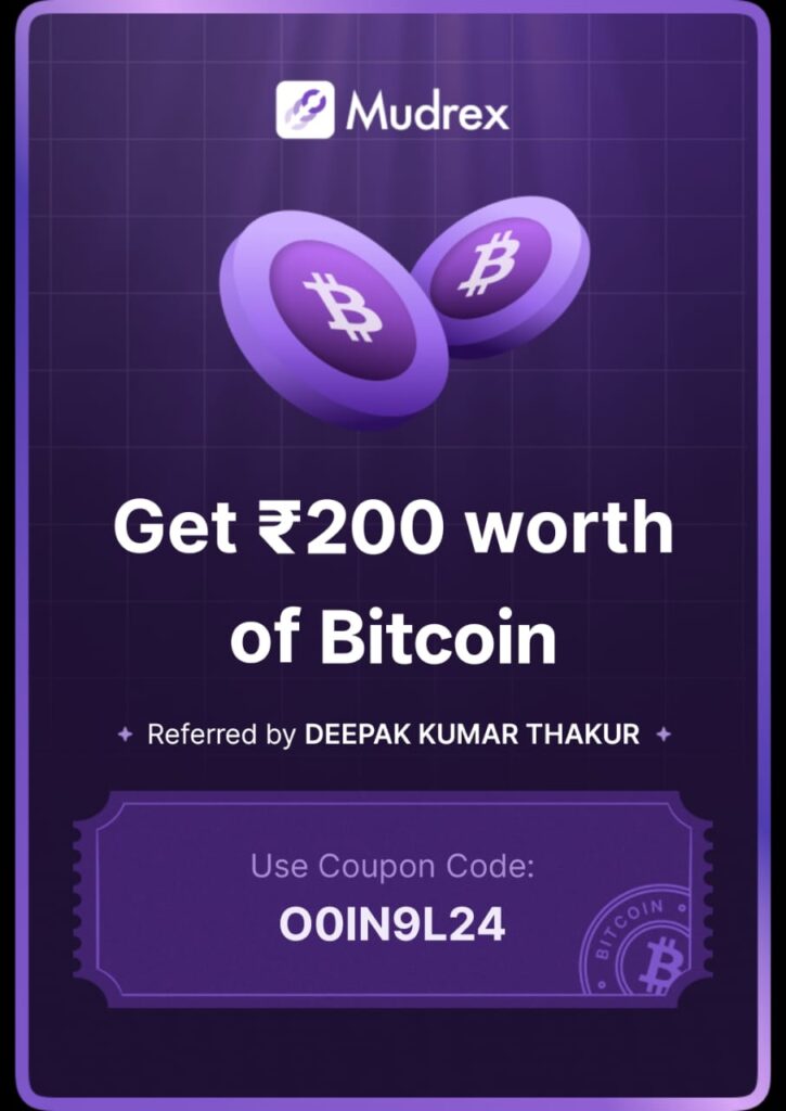 💎 Use the Mudrex App Referral Code O0IN9L24 to claim your ₹200 Bitcoin welcome bonus on your first deposit.